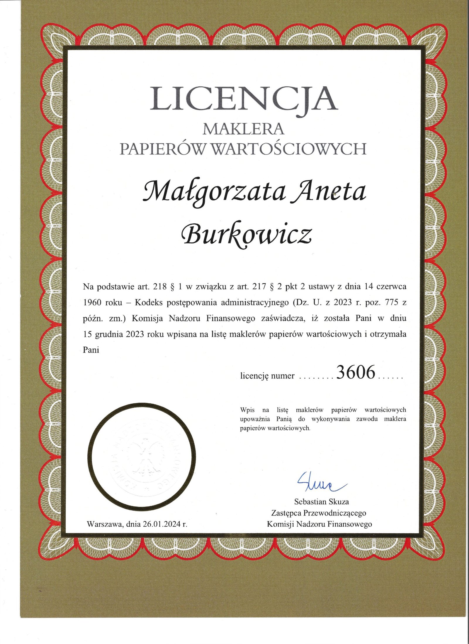 - Makler Papierów Wartościowych nr 3606